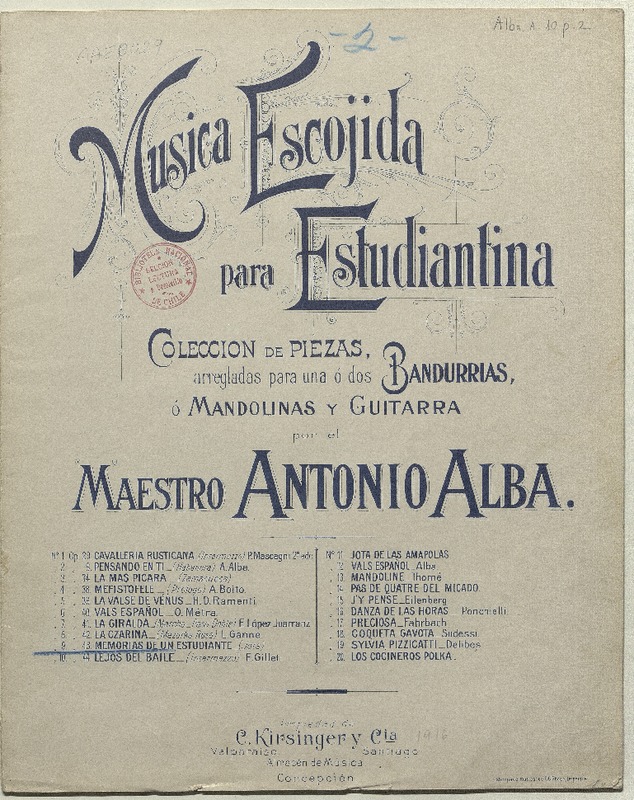 Pensando en tí habanera para canto y guitarra [música] : música de Antonio Alba ; letra de Celeste L. de Cruz-Coke.