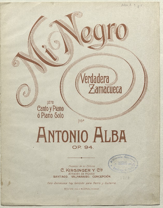 Mi negro verdadera zamacueca [para] canto y piano solo [música] : Antonio Alba.