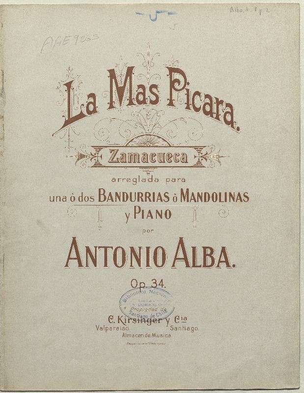La más pícara zamacueca arreglada para una o dos bandurrias o mandolinas y piano [música] : Antonio Alba.