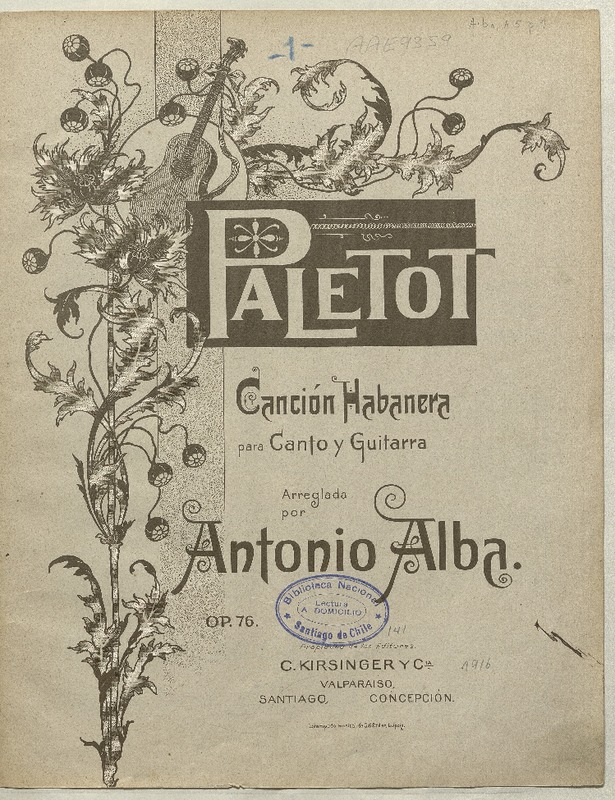 Paletot canción habanera [para] canto y guitarra [música] : arreglada por Antonio Alba.