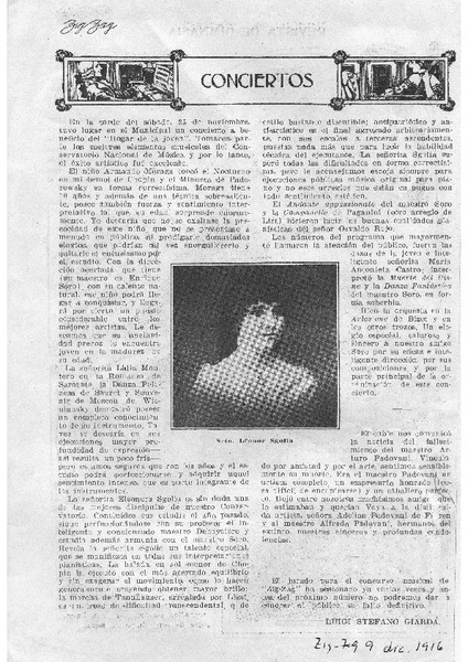 Crítica musical - Músicos - Soro, Enrique - Reseña de conciertos - Moraga, Armando - Montero, Lidia - Sgolia, Eleonora - Rojo, Osvaldo - Castro, Maria Antonieta - Padovani, Arturo