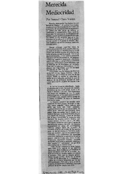 "La música Popular Mundial Pasa por un Pésimo Momento" [artículo]