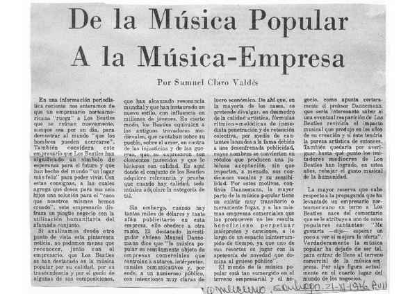 Ubiergo, Fernando - Música popular - CRITICA - Industria musical