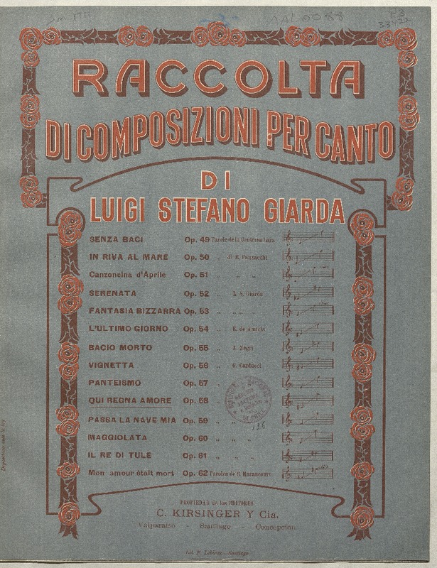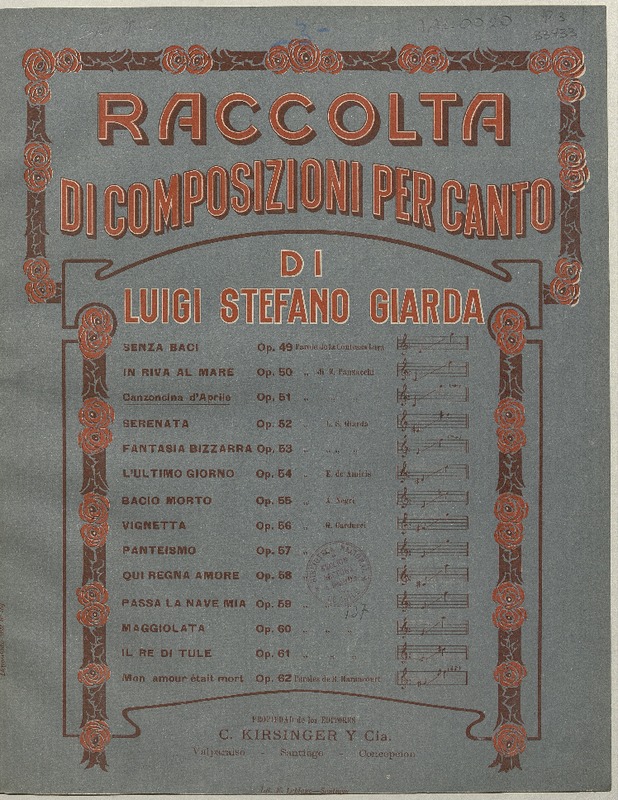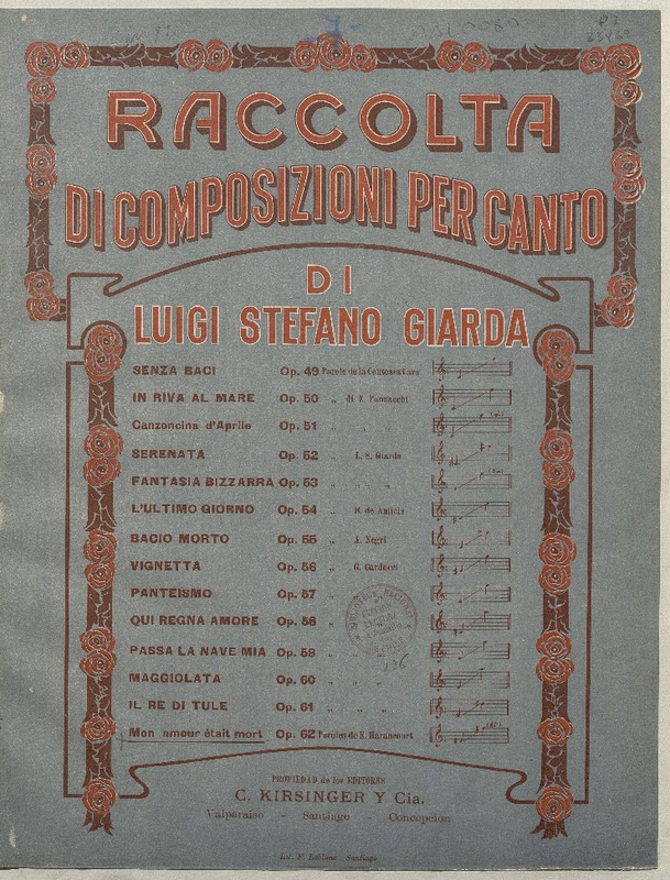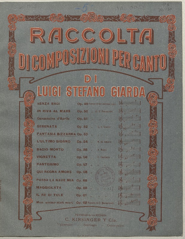 Rosa de primavera [para canto con acompañamiento de piano] [música] : poesía de Guillermo Matta ; Luigi Stefano Giarda.