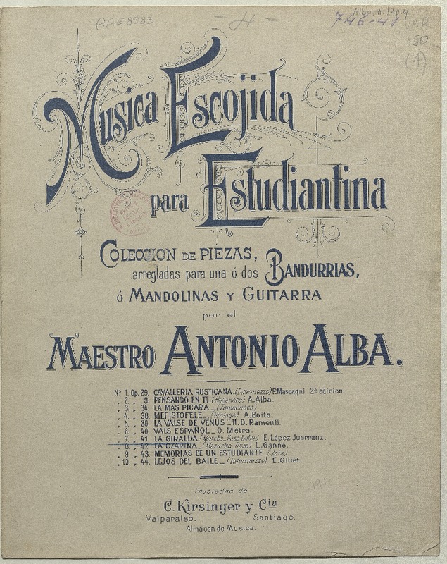 Música popular - Mazurcas - Habaneras - GAVOTAS - BANDURRIA Y GUITARRA (MUSICA) - Jota - MANDOLINO (MUSICA) - BARCAROLAS - Mandolina