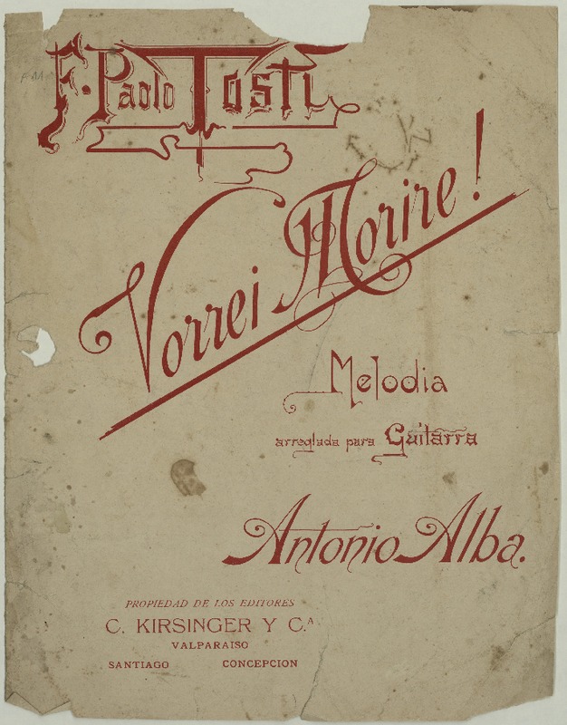 Vorrei morire melodia para guitarra [música] : de F. Paolo Tosti ; arreglado por Antonio Alba