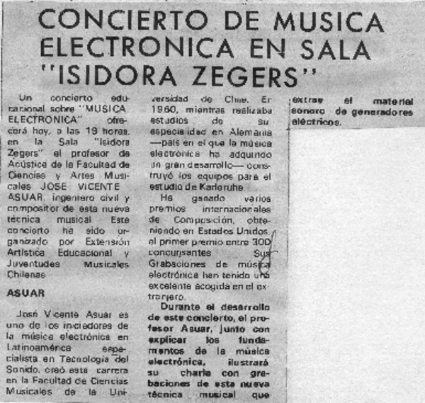 Concierto de Música Electronica en sala "Isidora Zegers" [artículo]