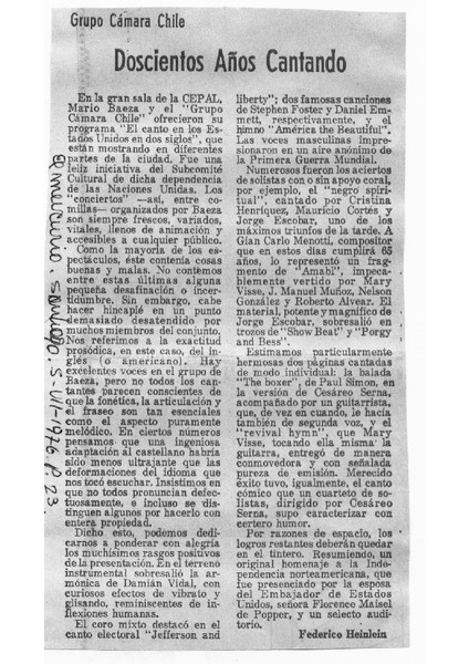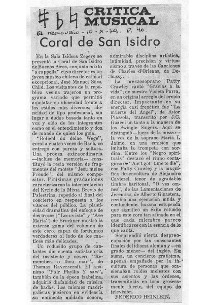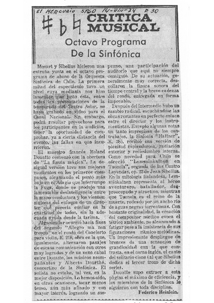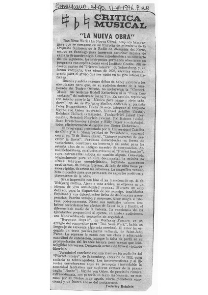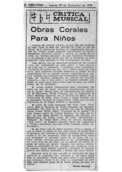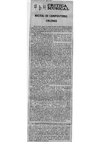 Villablanca, Santiago - Música docta - Conciertos - Crítica musical - Letelier, Carmen Luisa - Minoletti, Guido - Rosas, Fernando - Escobedo, Jaime - Lena, Marisa - Lara Bravo, Fernando