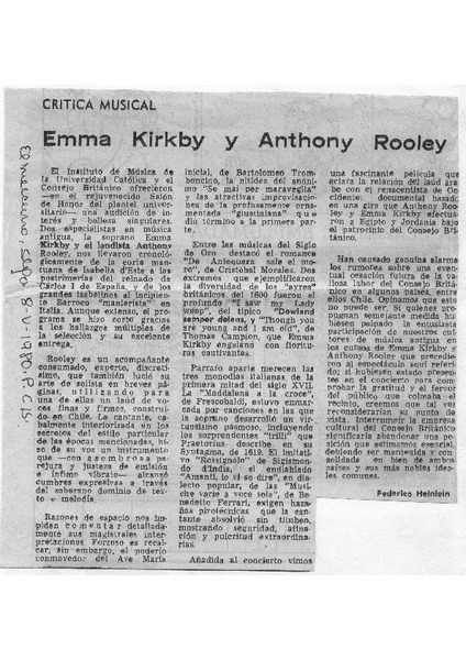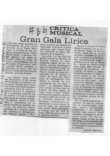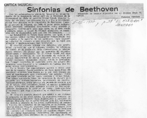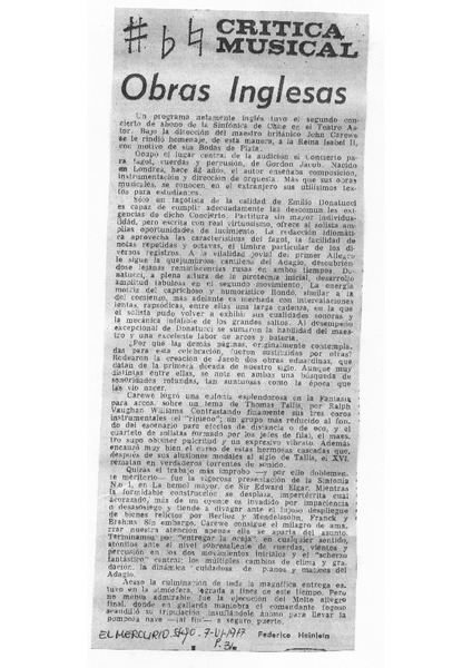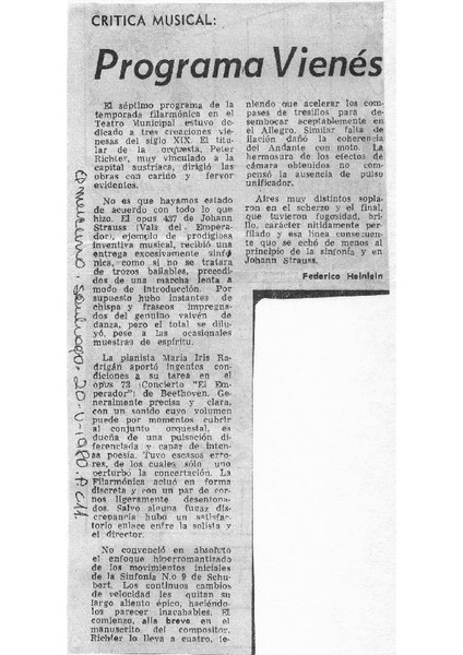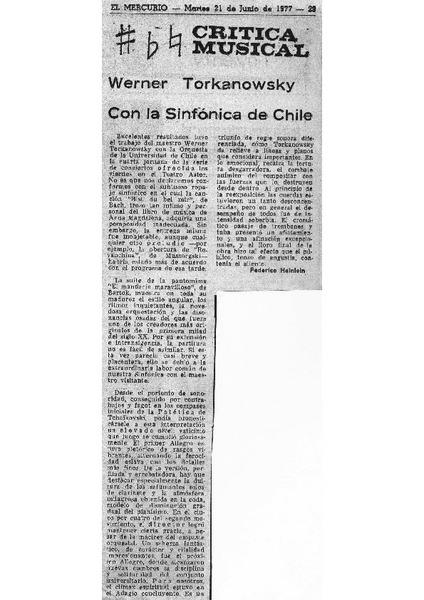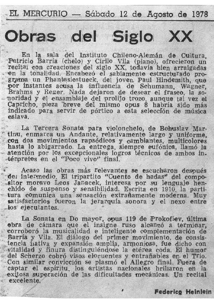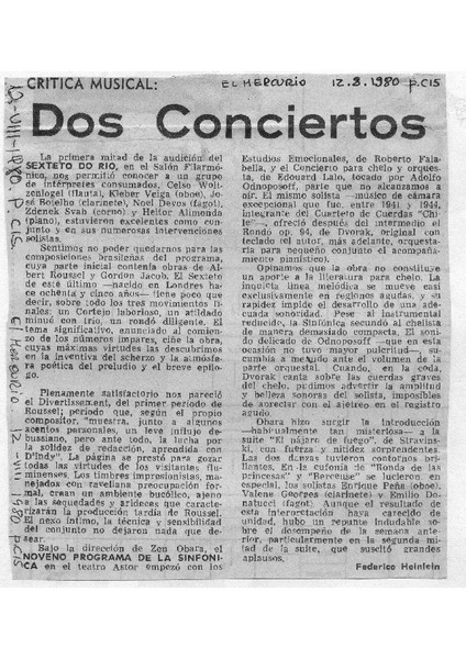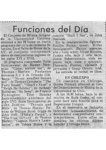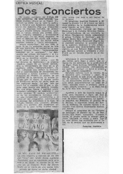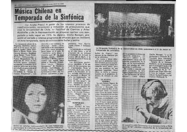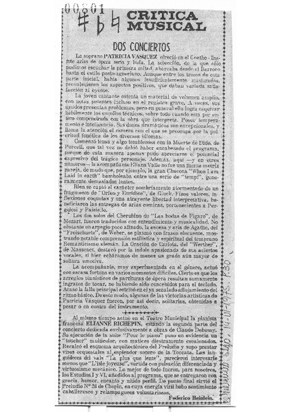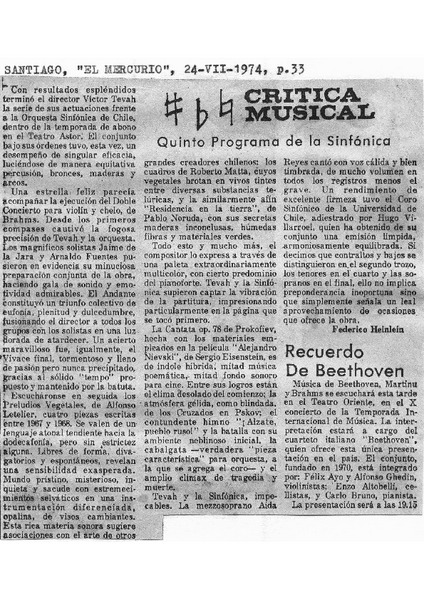 Conciertos - Música docta - Crítica musical - Tevah, Victor - Fones, Mary Ann - Letelier, Carmen Luisa - López Oyanedel, Enrique - Conn, Frida - Ansaldi, Fernando - Quesada, Francisco - Fuentes, Arnaldo - Harms, Alberto - Lena, Marisa - Peña. Enrique