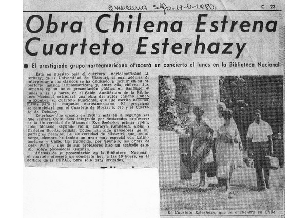 Cuarteto de Cuerdas Esterhazy - Ohlsen, Oscar - Hasbún, Octavio - Fones, Mary Ann - Subercaseaux, Juana - Crítica musical - Conciertos - Música docta - Mardones, Rafael