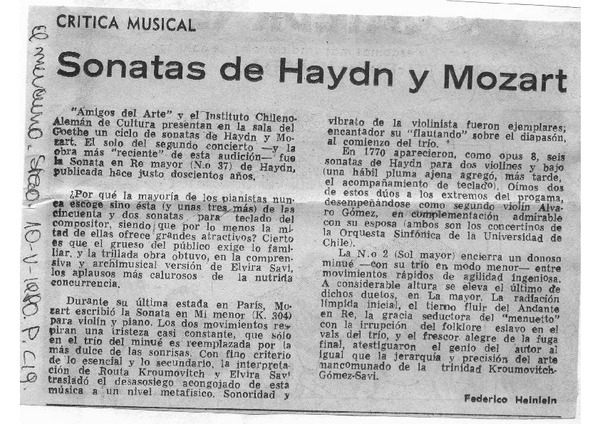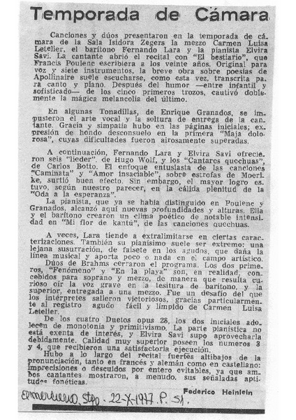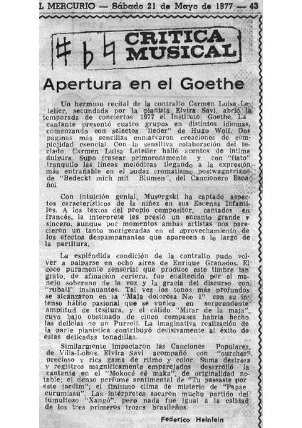 Letelier, Carmen Luisa - Savi, Elvira - Crítica musical - Conciertos - Música docta