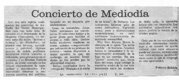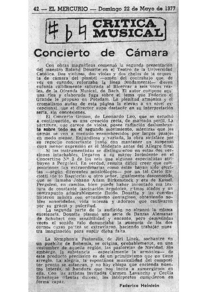 Música docta - Conciertos - Crítica musical - Letelier, Miguel - Villaroel, Hugo - Carewe, John - Letelier, Carmen Luisa - De la Maza, Mariano - Britos, Roberto - Ponce, Gilberto - Lara Bravo, Fernando