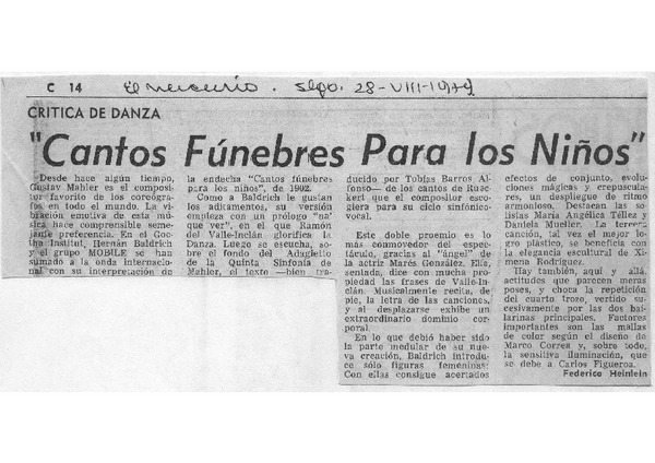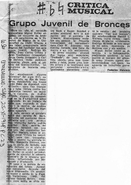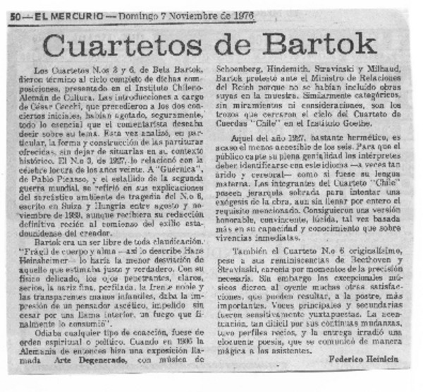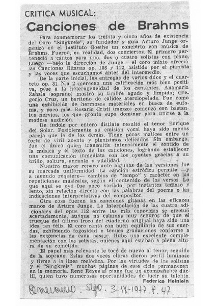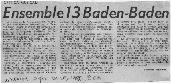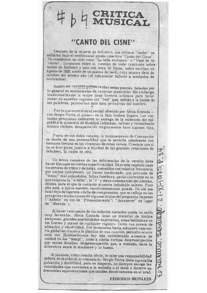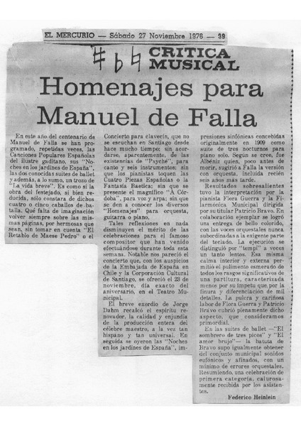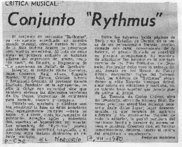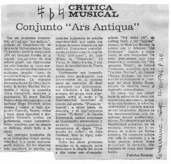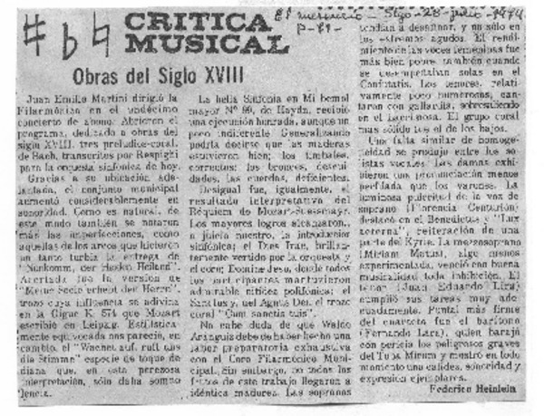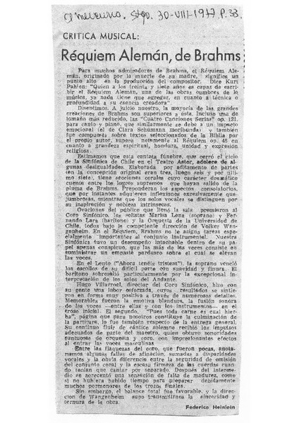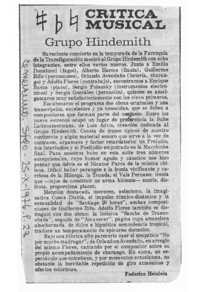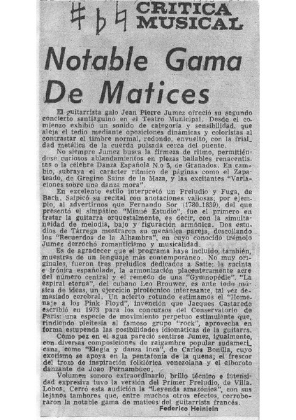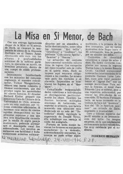 Hernández, Augusto - Música docta - Conciertos - Crítica musical - Letelier, Miguel - Wangenheim, Volker - Fones, Mary Ann - Letelier, Carmen Luisa - Gacitúa, Oscar - Peña, Enrique - Kroumovitch, Routa - Goméz, Alvaro - Bravo, Ximena - Ponce, Gilberto - Mallea, Cancio - Baldin, Aldo - Venegas, Ramón - Lara Bravo, Fernando