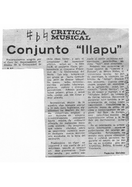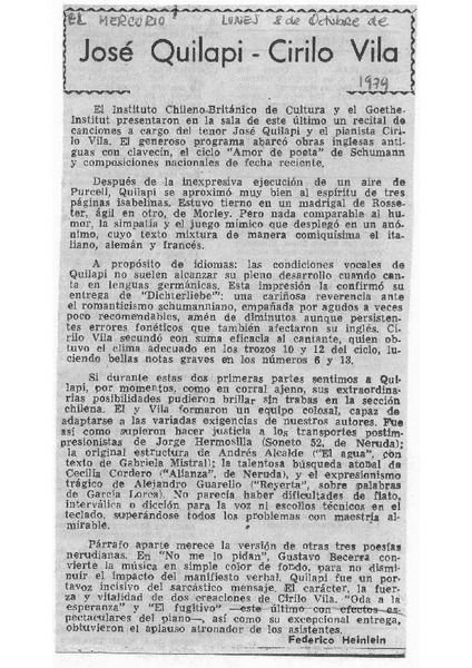 Quilapí, José - Douatte, Roland - Gutierrez, Juan - Délano, Laura - Crítica musical - Conciertos - Música docta - Araya, Graciela - González M., Luis