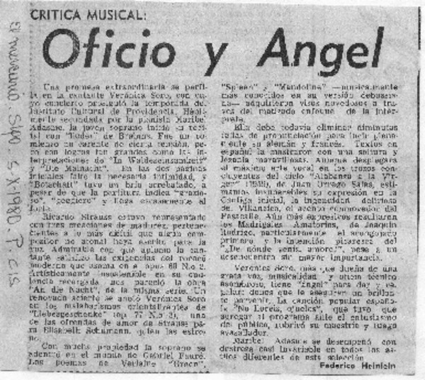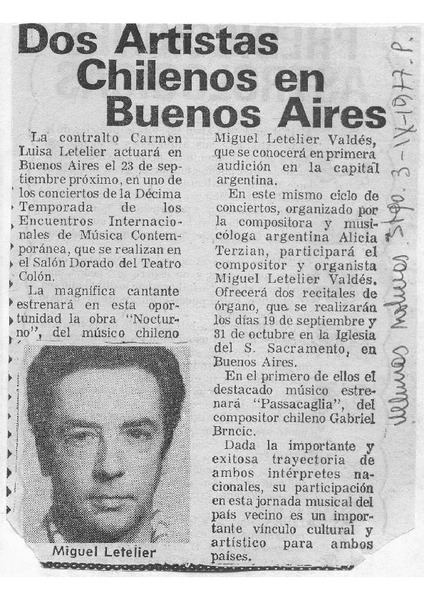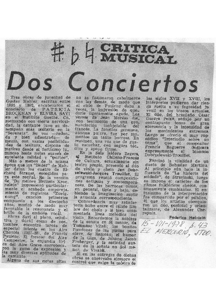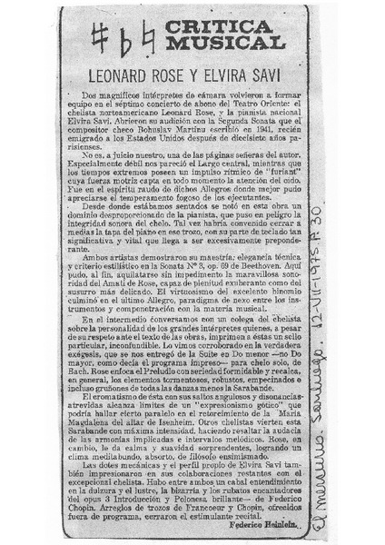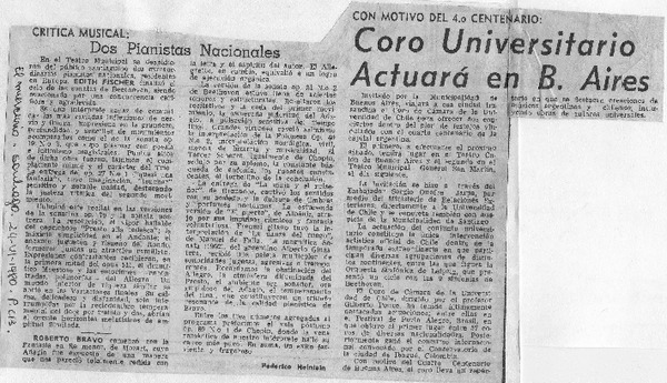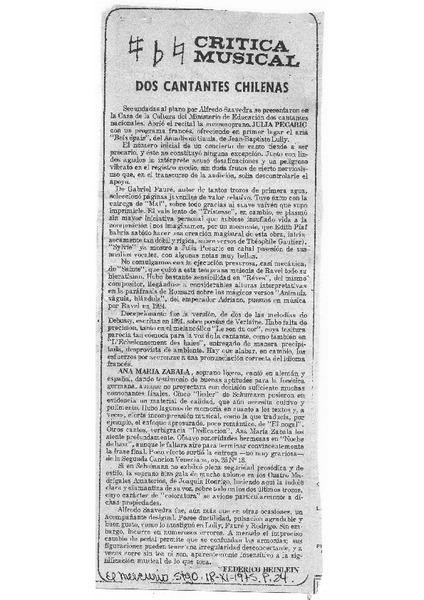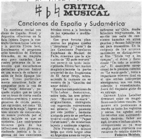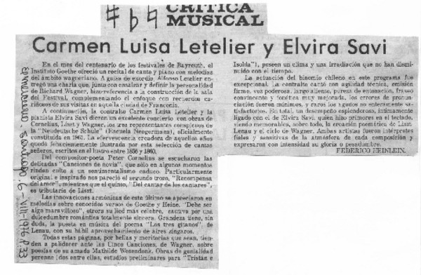 Carmen Luisa Letelier y Elvira Savi Crítica musical [artículo]