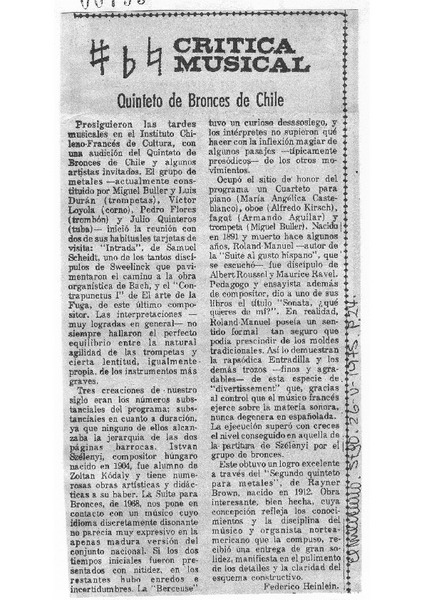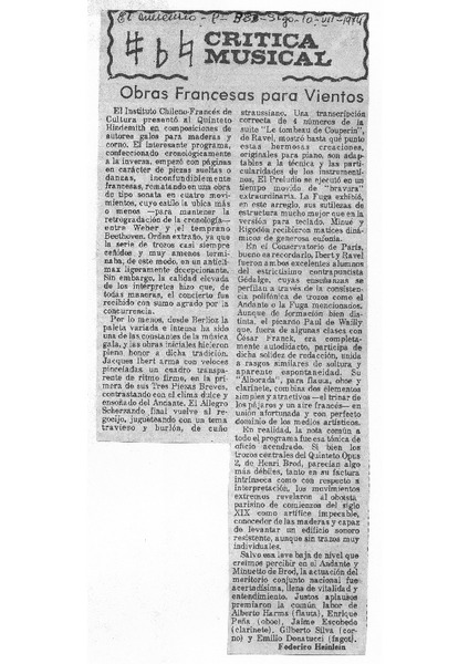 "Quinteto Villa-Lobos" Crítica musical [artículo]