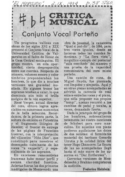 Temporada de la Univ. Católica Crítica Musical [artículo]