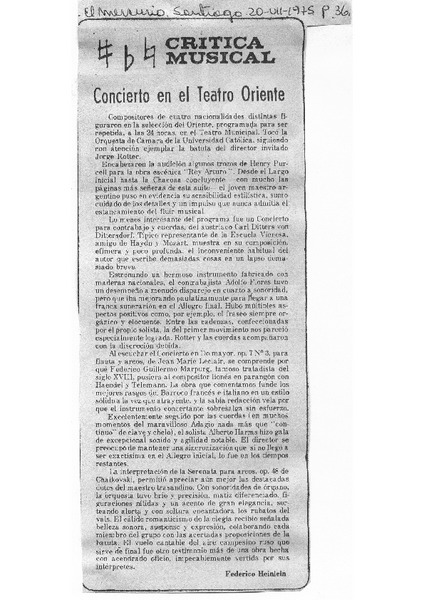 Música docta - Ascencio, Guillermo - Lira, Juan Eduardo - Richter, Peter - Uthoff, Ernest - Crítica musical - Conciertos
