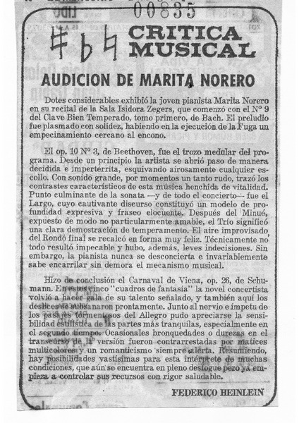 Conciertos - Norero, Marita - Crítica musical - Música docta
