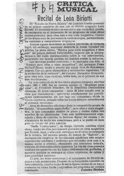 Conciertos - Biriotti, León - Crítica musical - Música docta