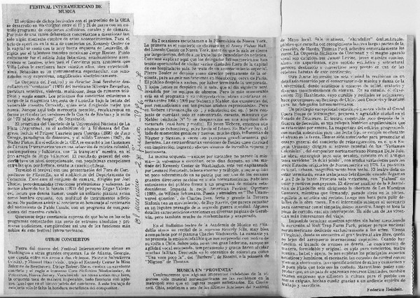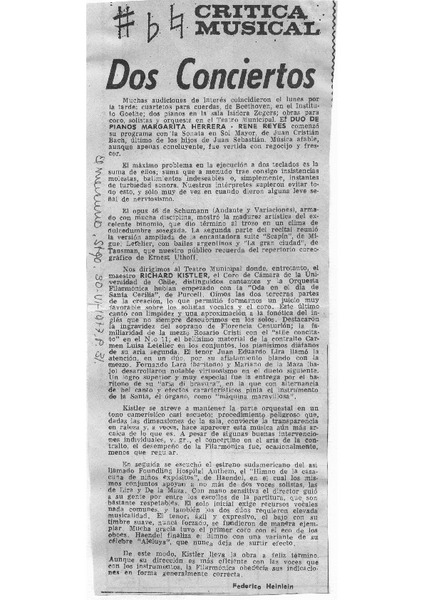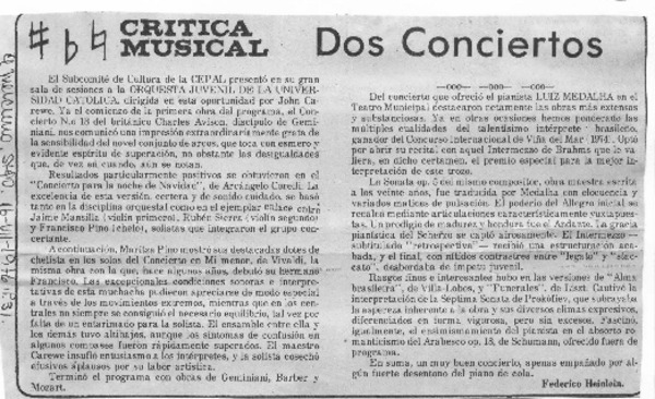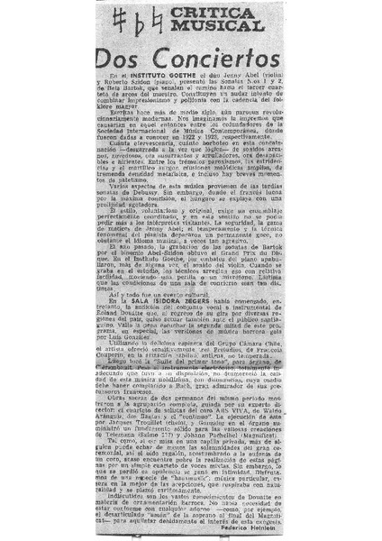 Conciertos - Música docta - Crítica musical - Rifo, Guillermo - Letelier, Carmen Luisa - Donatucci, Emilio - García, Nino - Flores, Adolfo - Harms, Alberto - Vial, Domingo