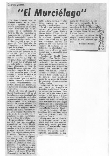 Conciertos - Música docta - Crítica musical - Junge, Arturo - Mika, Volfgang - Gerstenbauer, Rudolf - Lachmann, Elisabeth - Granzer, Roberto - Uhl, Fritz - Vivano, Rosa - Castro, Enrique