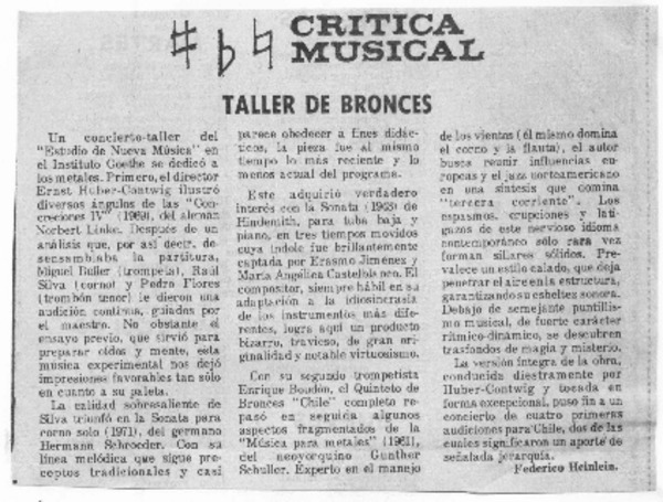 Buller, Miguel - Música docta - Conciertos - Crítica musical - Huber-Contwig, Ernst - Silva, Raúl - Boudon, Enrique - Flores, Pedro - Castelblanco, María Angelica - Jiménez, Erasmo