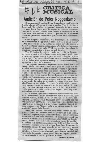Audiciónde Peter Roggenkamp Crítica Musical [artículo]
