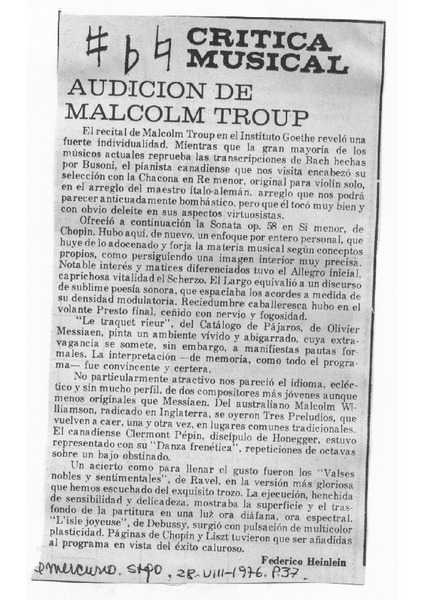 Audición de Malcolm Troup Crítica Musical [artículo]