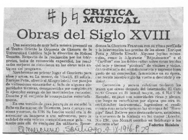 Telemann y Chilenos contemporáneos Crítica Musical [artículo]