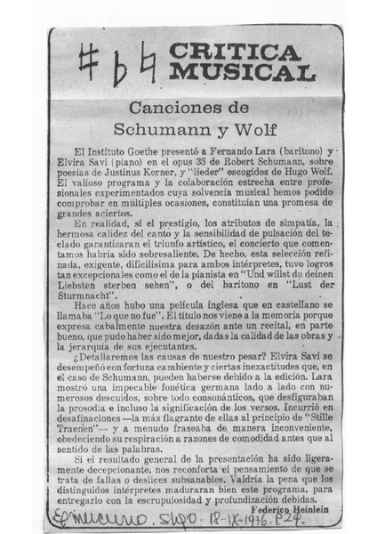 Canciones de Schumann y Wolf Crítica Musical [artículo]