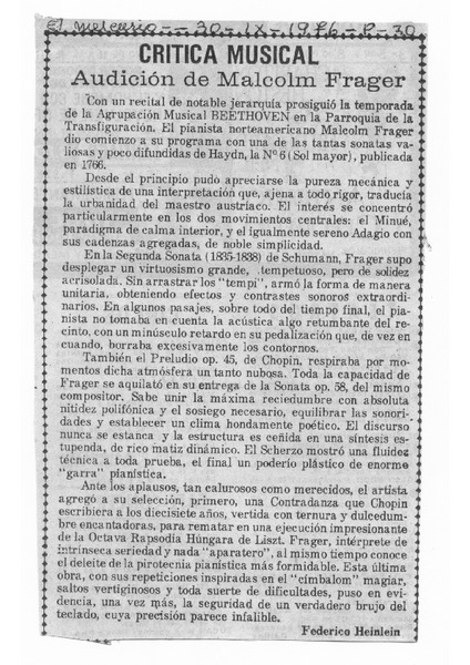 Audición de Malcolm Frager Crítica Musical [artículo]
