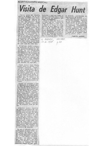 Acontecimiento Musical Visita de Edgar Hunt [artículo]