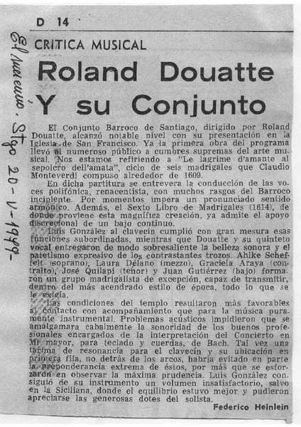 Douatte, Roland - Música docta - Conciertos - Crítica musical - Rifo, Guillermo - De la Jara, Jaime - Quesada, Francisco - Fotonotas - Silva C., José Manuel