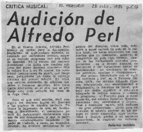 Audición de Alfredo Perl Crítica Musical [artículo]