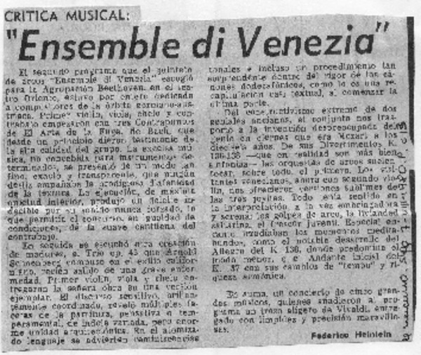 "Ensemble di Venezia" Crítica Musical [artículo]