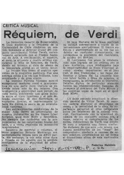 Reyes, Aida - Música docta - Conciertos - Crítica musical - Tevah, Victor - Villaroel, Hugo - De la Maza, Mariano - Vásquez, Patricia - Mastrango, Horacio
