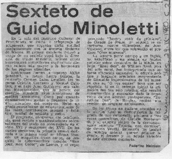 Minoletti, Guido - Música docta - Conciertos - Crítica musical - Letelier, Carmen Luisa - Délano, Laura - Gutiérrez, Juan - Scheffelt, Ahlke - Carrasco, Cristián - Cubillos, Manuel