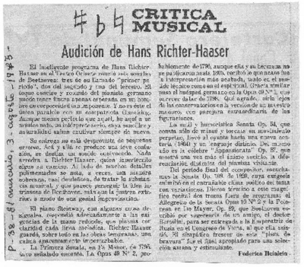 Audición de Hans Richter-Haaser Crítica Musical [artículo]