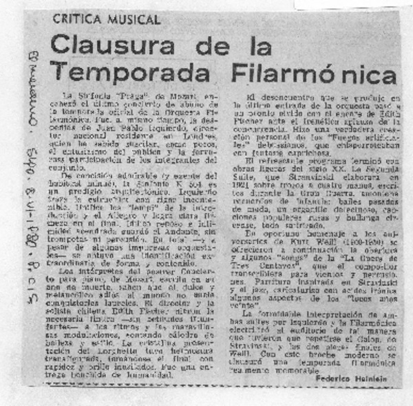 Clausura de la Temporada Filarmónica Crítica Musical [artículo]