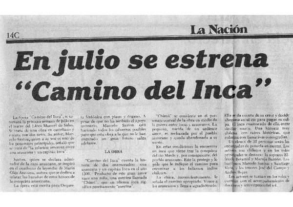 En julio se estrena "Camino del Indio" [artículo]