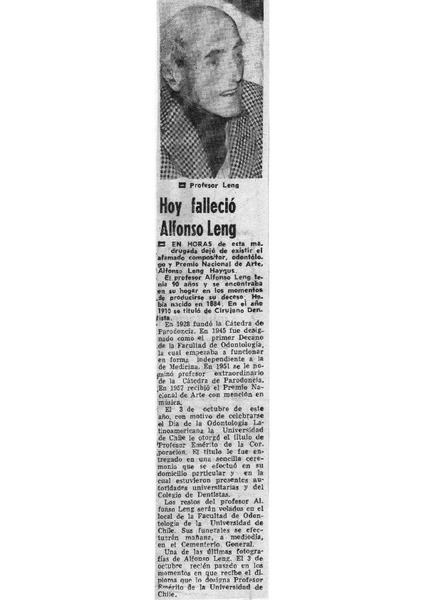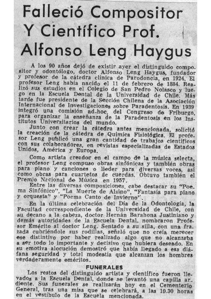 Falleció compositor y científico Prof. Alfonso Leng Haygus [artículo]