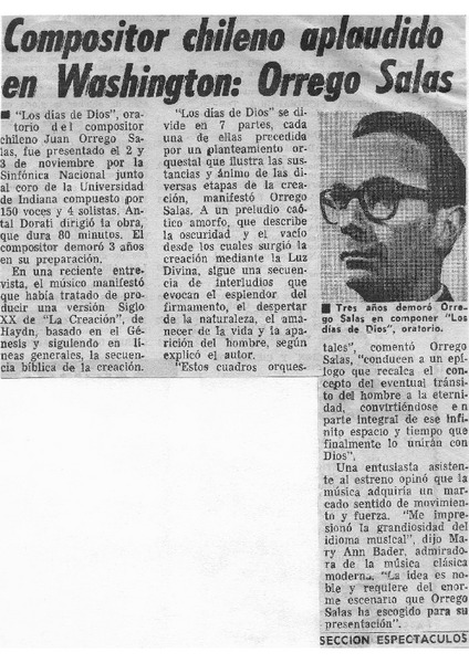 Los días de Dios - Reseña de concierto - Orrego Salas, Juan - Compositores - Crítica musical