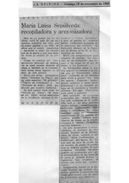 Maria Luisa Sepúlveda: recopiladora y armonizadra [artículo]