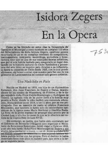 Historia - Ópera - Lanza, Henry - Zegers, Isidora - Música sacra