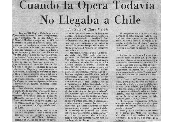 Cuando la Opera Todavía No Llegaba a Chile. [artículo]