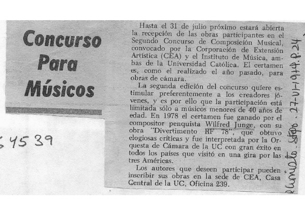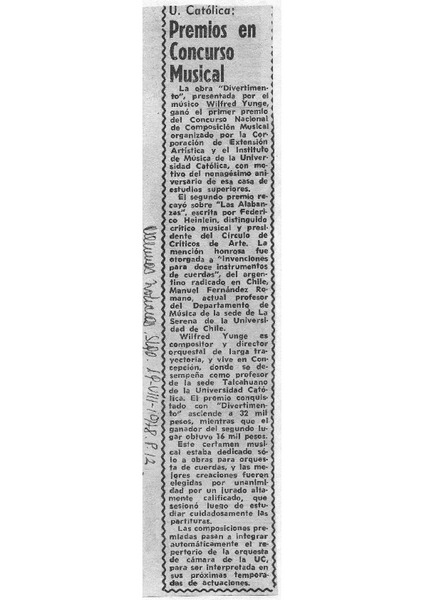 Yunge, Wilfred - Heinlein Funcke, Federico - Concursos - Música docta
