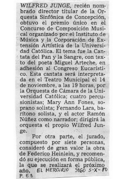 Concursos - Música docta - Junge, Wilfried - Heinlein Funcke, Federico