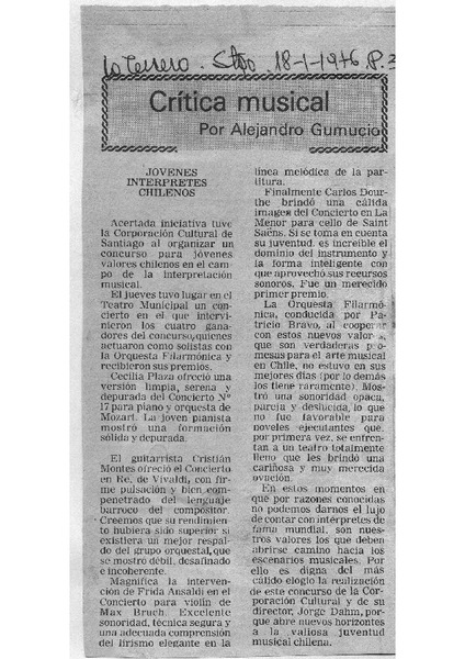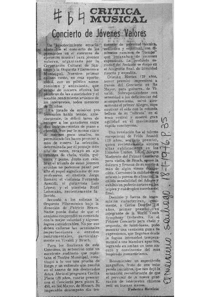 Jóvenes intérpretes Chilenos Crítica Musical [artículo]