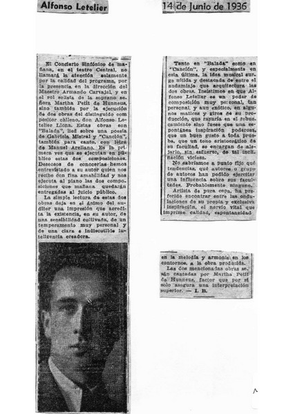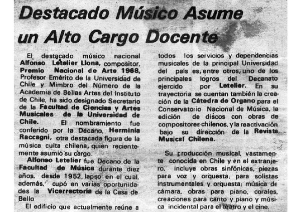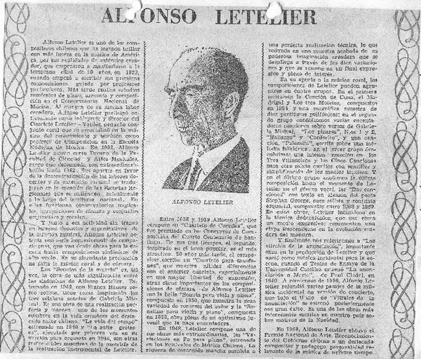 Alfonso Letelier: el chileno no conoce a sus músicos. [artículo]